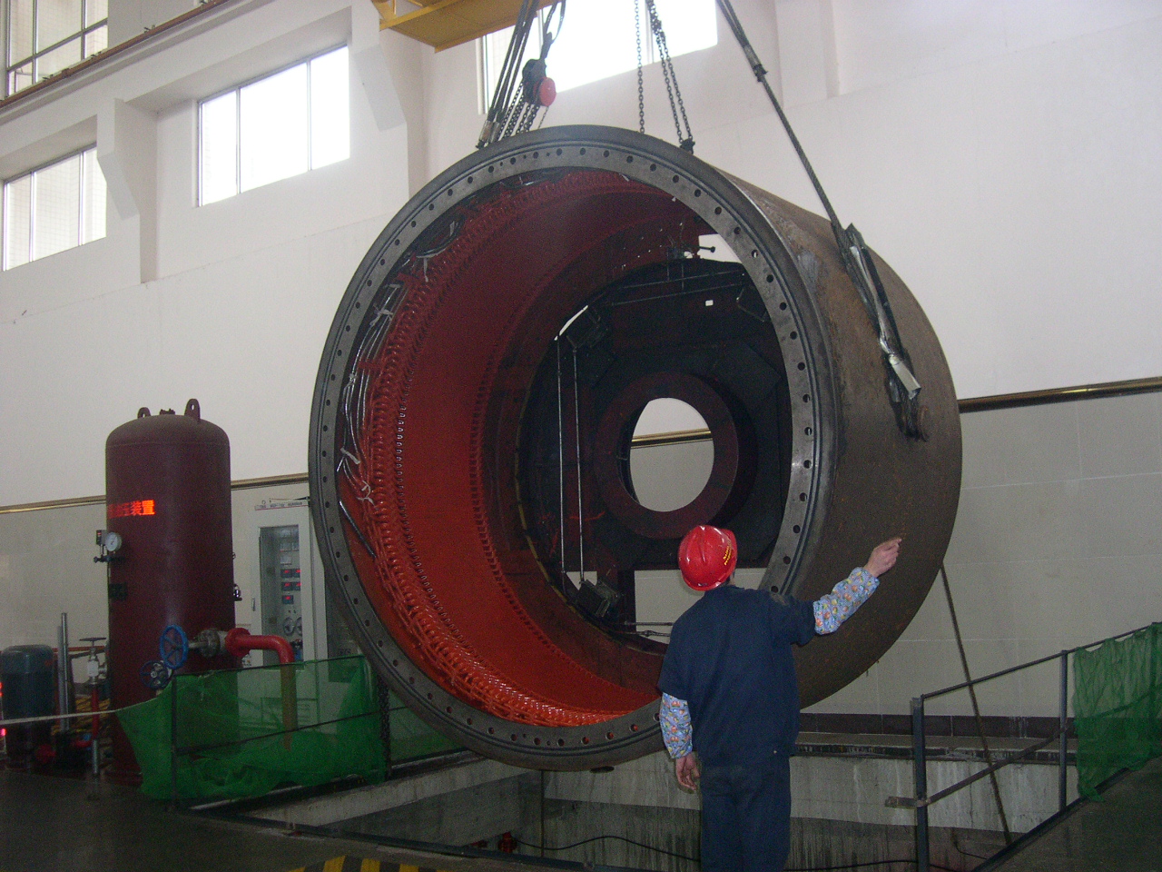 公司可設(shè)計(jì)開(kāi)發(fā)生產(chǎn)制造水頭3~500米、轉(zhuǎn)輪直徑0.35~5米,單機(jī)容量125-10000kW的貫流式、軸流式、混流式、斜擊式、沖擊式水輪發(fā)電機(jī)組及,其配套的球閥、蝴蝶閥、液壓閘閥、閘門(mén)、起閉機(jī)、可控硅勵(lì)磁裝置、電站繼電保護(hù)、電站電力控制設(shè)備等配套設(shè)備,以及中、小型發(fā)電設(shè)備技改、維修,及零部件生產(chǎn)加工。 公司擁有生產(chǎn)所需的全套設(shè)備和完善的檢測(cè)手段,擁有各類(lèi)專(zhuān)用設(shè)備100多臺(tái),其中大型專(zhuān)用加工設(shè)備10多臺(tái),如5m數(shù)控立車(chē)、6m臥車(chē)、Ф160數(shù)控鏜床、三座標(biāo)數(shù)控龍門(mén)銑床、數(shù)控線(xiàn)圈漲型機(jī),數(shù)控切割機(jī),70mm卷板機(jī),500T油壓機(jī)等;公司另設(shè)有發(fā)電機(jī)試驗(yàn)臺(tái)、絕緣材料試驗(yàn)室等檢測(cè)、試驗(yàn)部門(mén)。
